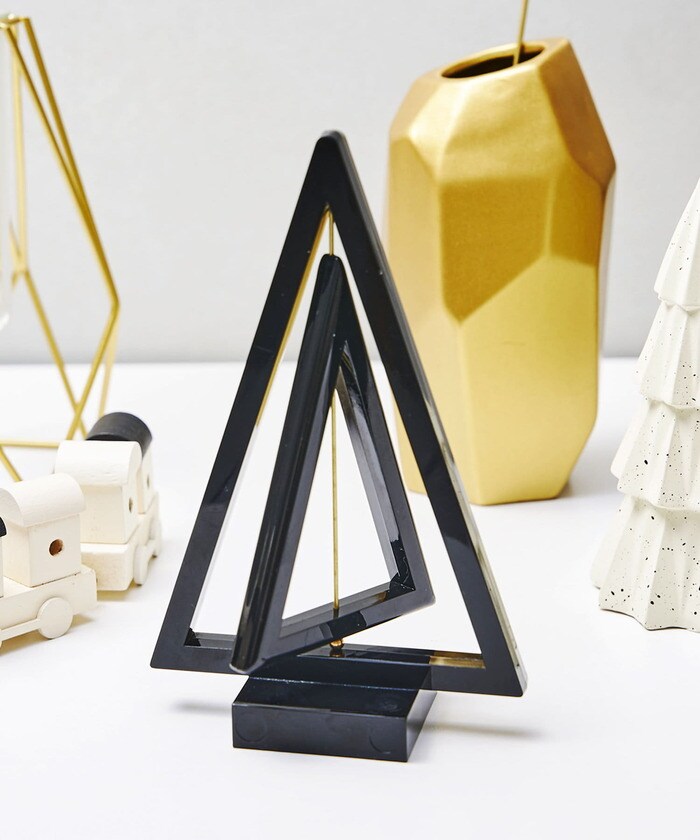 中心の三角形がクルクルと回る卓上ツリーです。玄関やリビングの棚などに飾って楽しめるコンパクトサイズ。シンプルなデザインなので様々なインテリアに合います。
