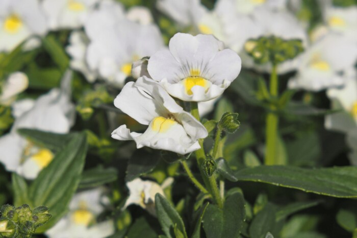 カラフルな色合いで個性的な花姿の宿根ネメシア。ホワイトカラーのネメシアは可憐で野趣あふれる雰囲気です。開花期が長く、秋から春まで美しい花を楽しむことができるので花壇の彩りにも重宝します。※参考価格:300~800円前後(3号ポット苗)