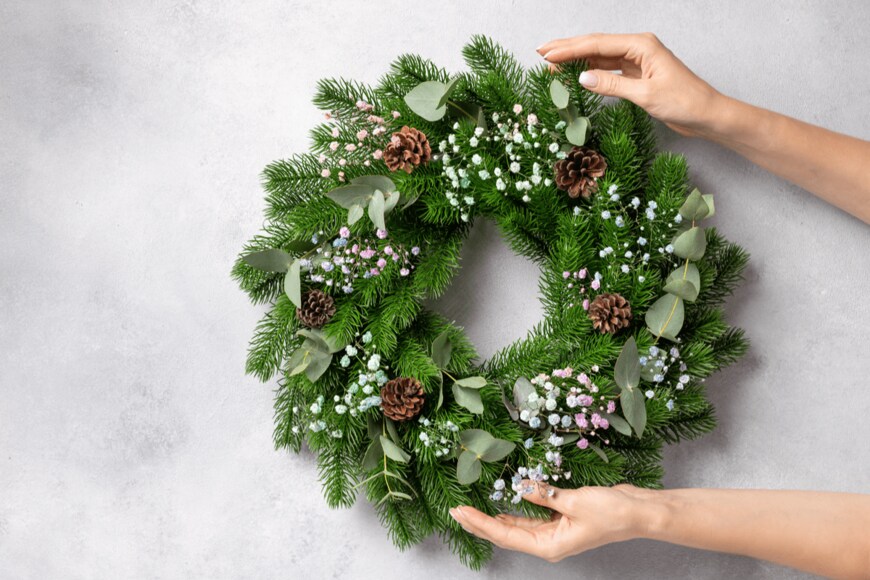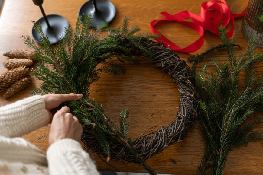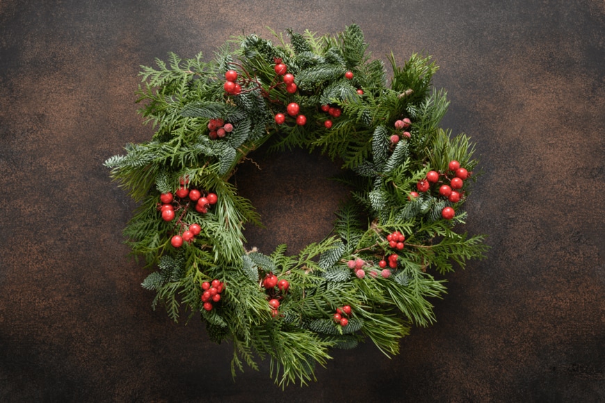 クリスマスリースに飾る「グリーンの植物」