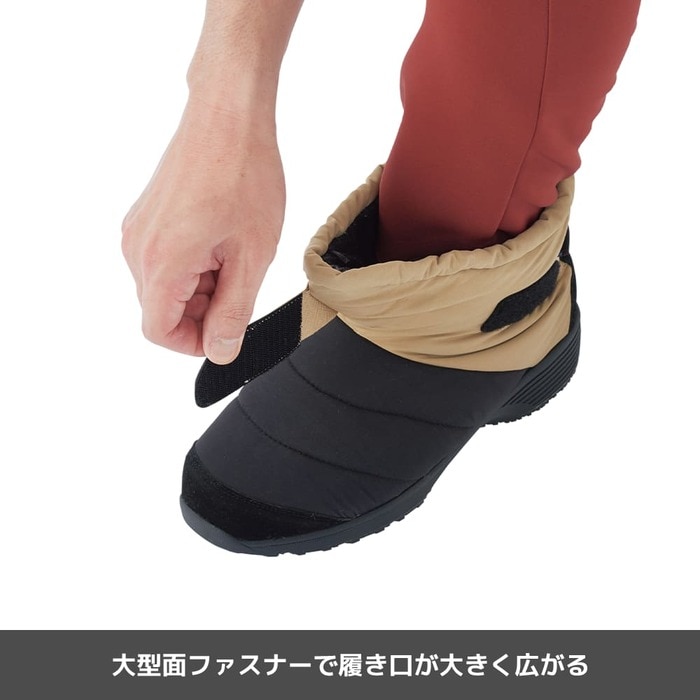 中わた搭載の高機能ブーツ。裏地にブラックアルミを使用していて、暖かい1足です。大型面ファスナーつきで、履き口が大きく広がって履きやすいのも魅力。また、抗菌・防臭に優れた「DIAFIBERBALL」という素材を使用しているのも特徴です。
