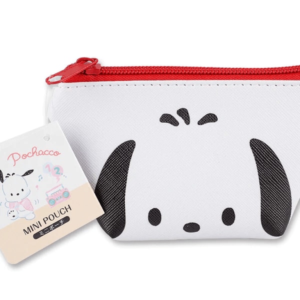 サンリオキャラクターのフェイスがデザインされた舟形のミニポーチです。