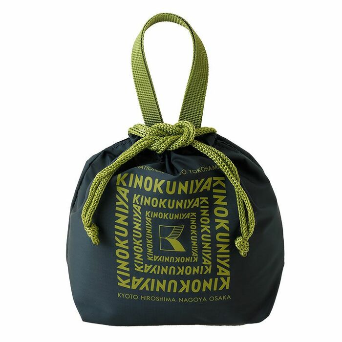 紀ノ国屋 手提げ巾着 グリーンXモスグリーン