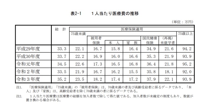 そもそも高齢者は、医療費が高くなる傾向にあります。厚生労働省の「令和3年度医療費の動向」でも、75歳以上の1人あたりの医療費はほかの年代のおよそ4倍高くなっています。
