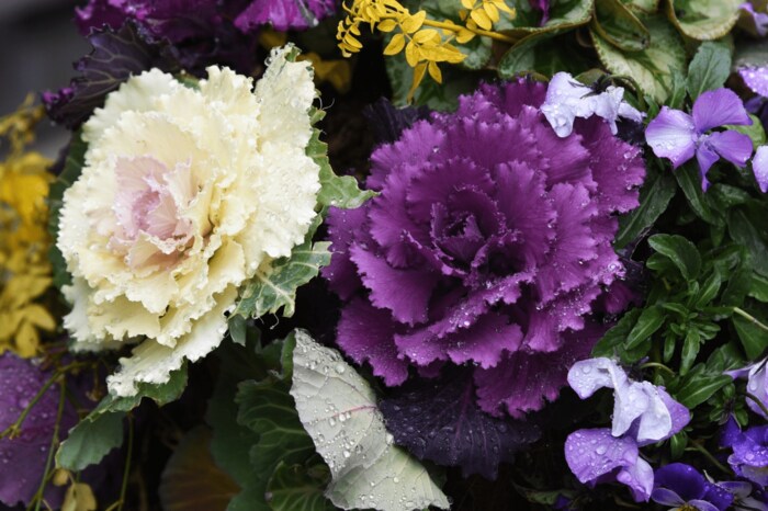 キャベツの仲間のハボタンは江戸時代から親しまれてきた植物。華やかな姿が寄せ植えにもピッタリで、正月の飾りとしてもよく使用されています。