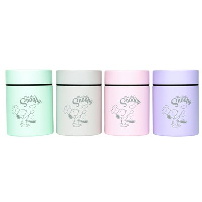 やわらかなパステルカラーにスヌーピーが描かれたスープジャー。粉末スープやフリーズドライ1杯分にぴったりのコンパクトサイズなので、持ち歩きしやすいです。