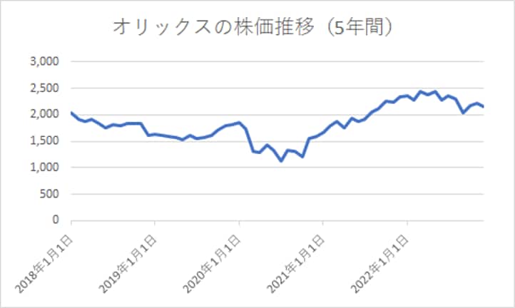 4. オリックスの株価推移を1年間・3年間・5年間のチャートで確認