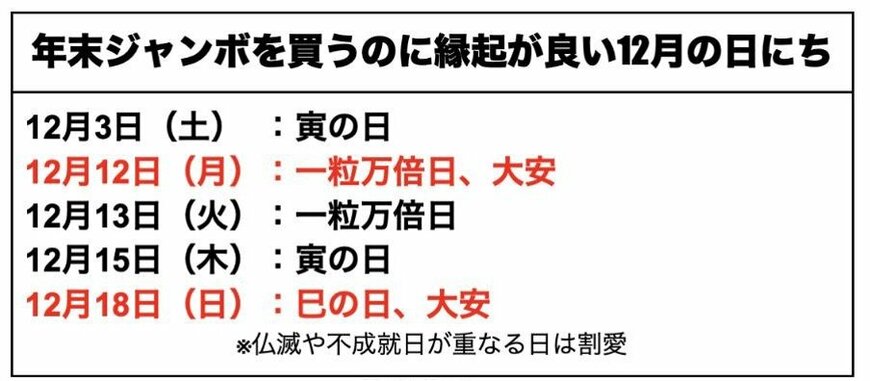 「年末ジャンボを買うなら縁起の良い日に買いたい」という方は多いかと思います。