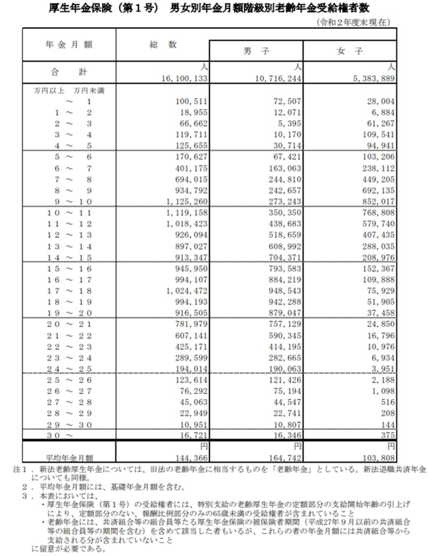 公的年金の2階部分にあたる厚生年金の平均月額は、厚生労働省年金局「令和2年度 厚生年金・国民年金事業の概況」によると次のとおりとなっています。
