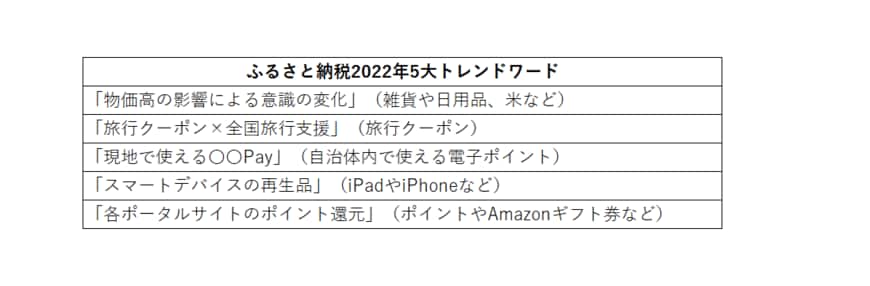 ふるさと納税の返礼品2022年の5大トレンドワードは