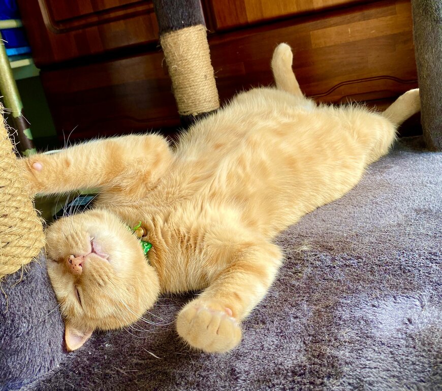 可愛いお腹を出して大胆に眠る猫「モカ」くん