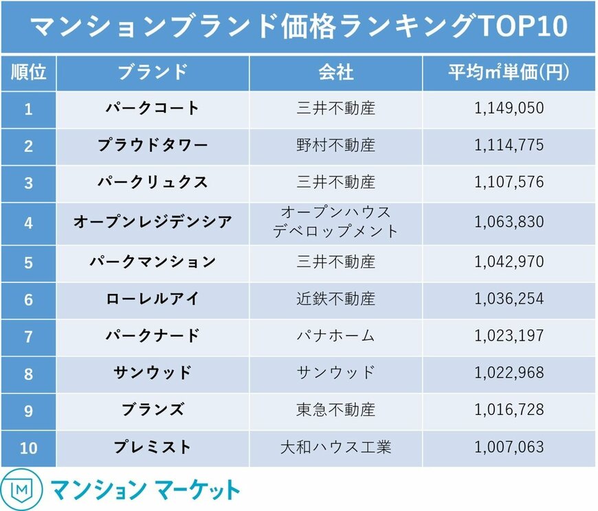 最も高額は「パークコート」シリーズ。三井不動産ブランドが3ブランドの最多ランクイン!