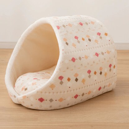 ドーム型のキュートなペット用ベッドを探しているなら、こちらはいかがでしょうか。中のクッションがモコモコしているので、冬にも大活躍してくれるはずです。あたたかみのある、かわいい絵柄も素敵ですね。