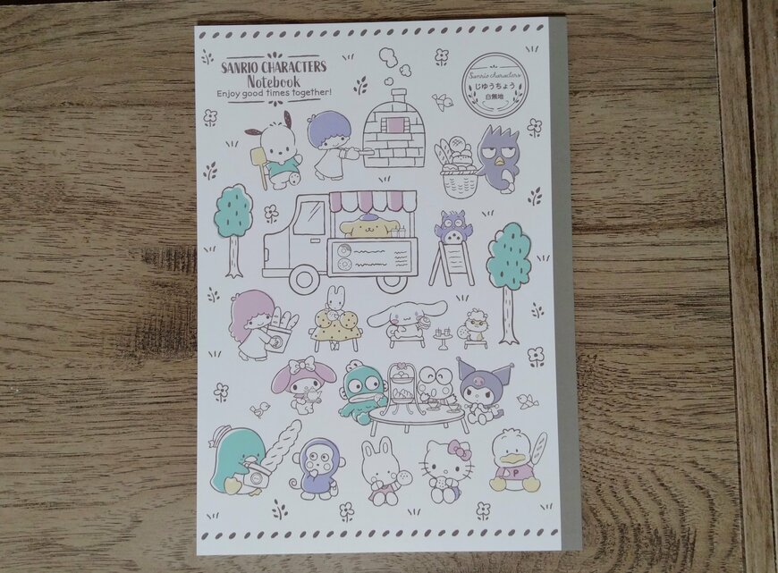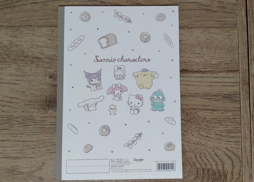 裏面には、8種類のキャラクターとパンが配置されています。人気のキャラクターがもりだくさんですので、サンリオ好きの人に満足のいくノートなのではないでしょうか。