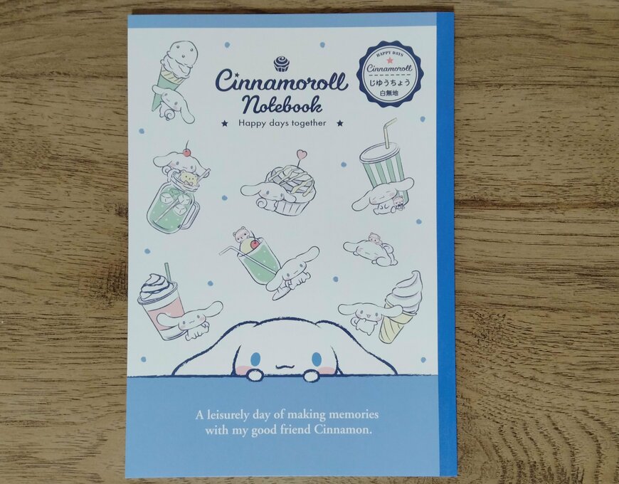 ノートの綴じ代部分が、シナモロールの目と同じ青色なのも素敵です。