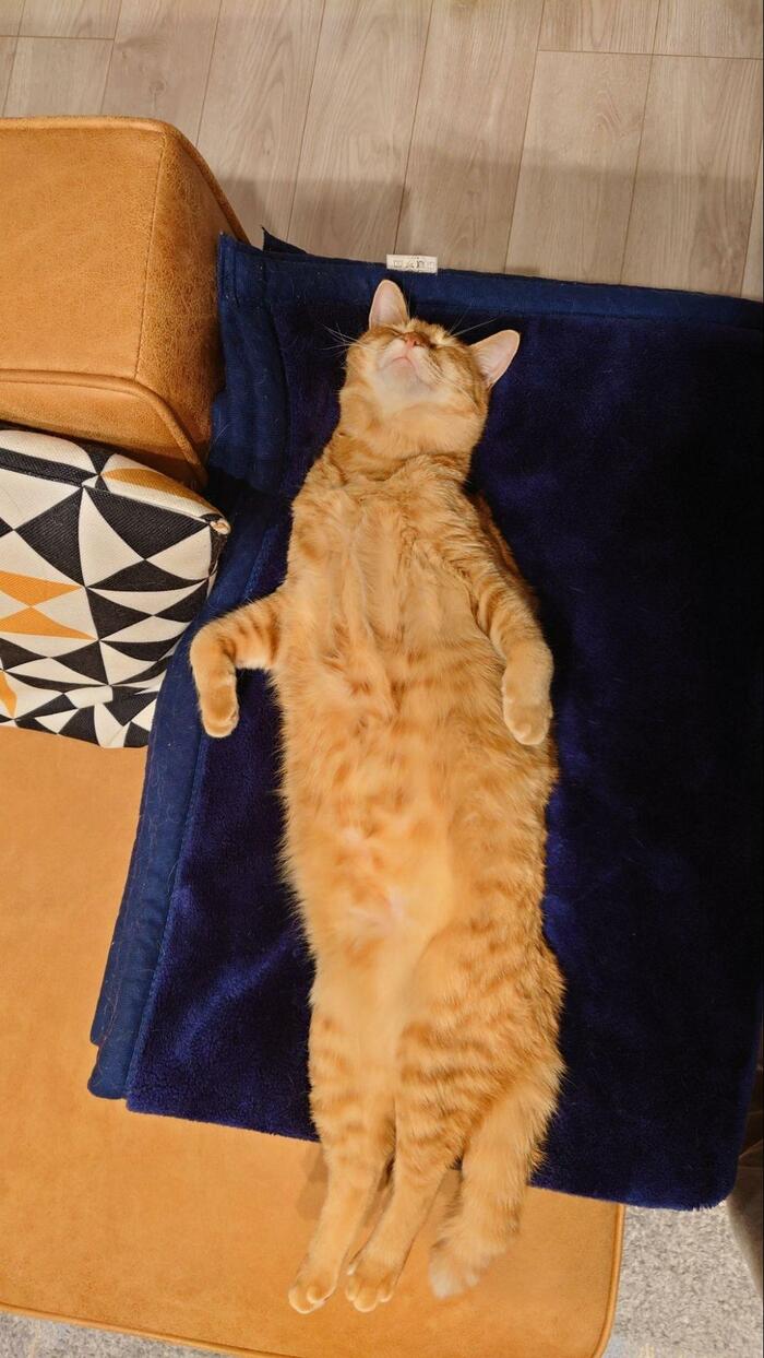 猫ちゃんが見せてくれた愛らしい寝姿に、クスッと笑みがこぼれてしまう瞬間ですね。