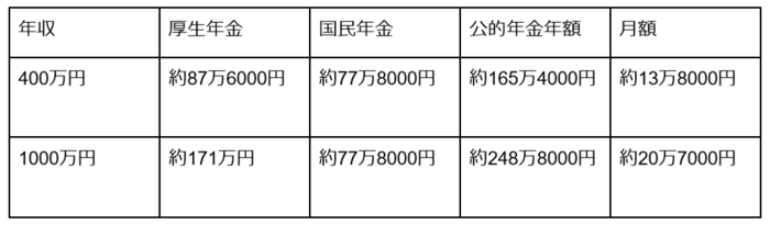 2. 厚生年金「年収400万円と年収1000万円」で試算