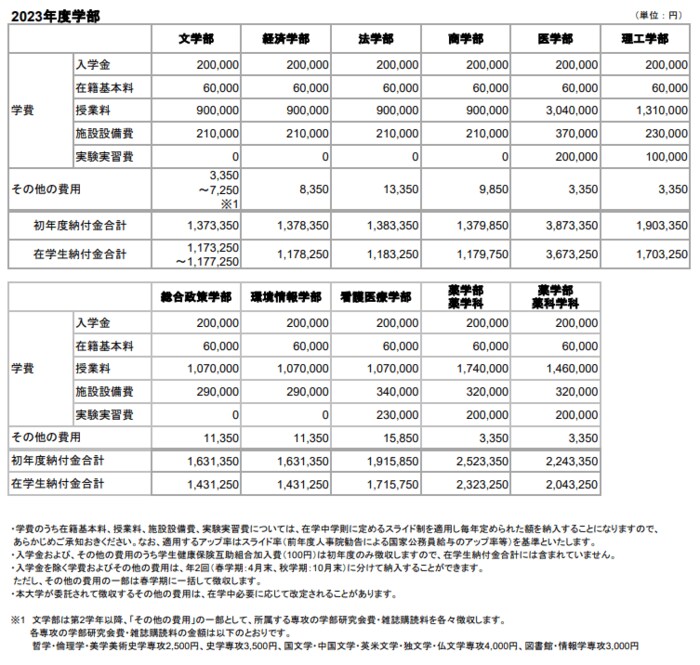 慶應義塾大学商学部の初年度納付金、および在学生納付金は、それぞれ以下のような構成となっています。