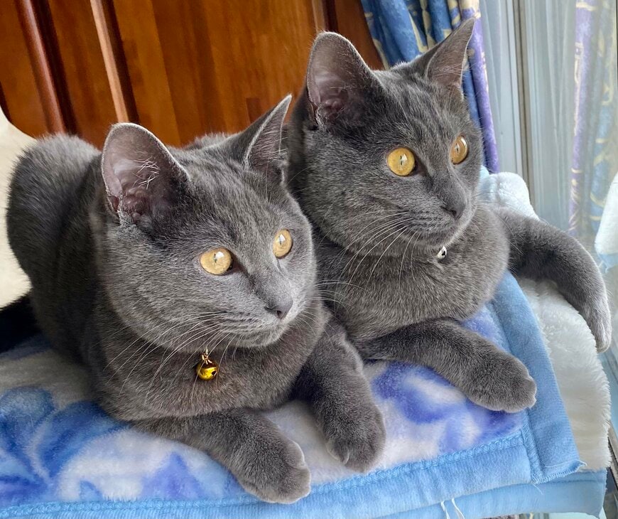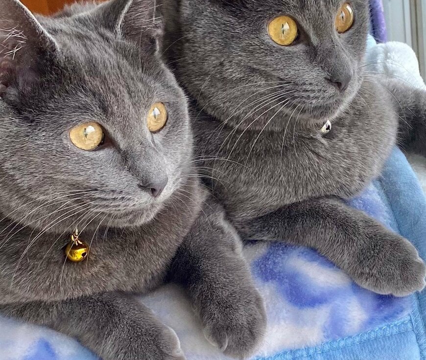 写っているのは、艶やかなグレーの毛並みが印象的な、2匹の猫ちゃん。兄弟猫の「カイ」くんと「グリ」くんです。