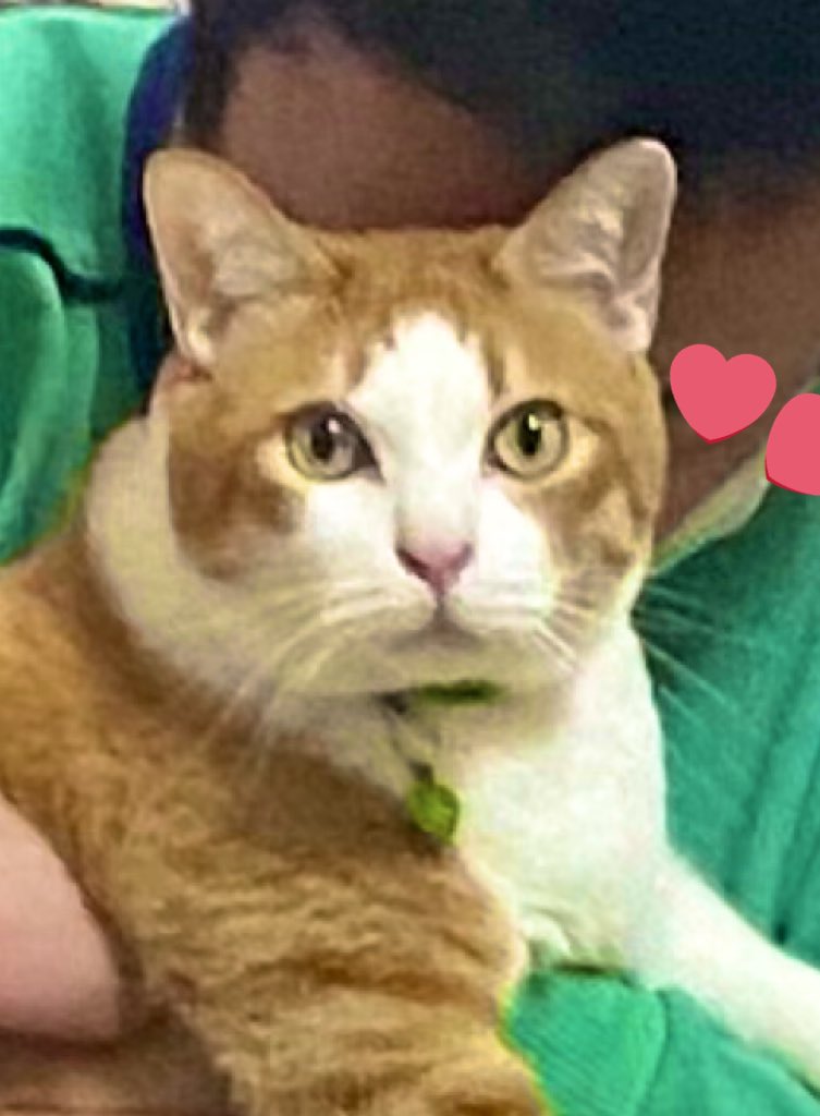 写真に写っているのは、パパさんと思われる男性に優しく抱きしめられる猫ちゃん。5歳の男の子「ふうた」くんです。