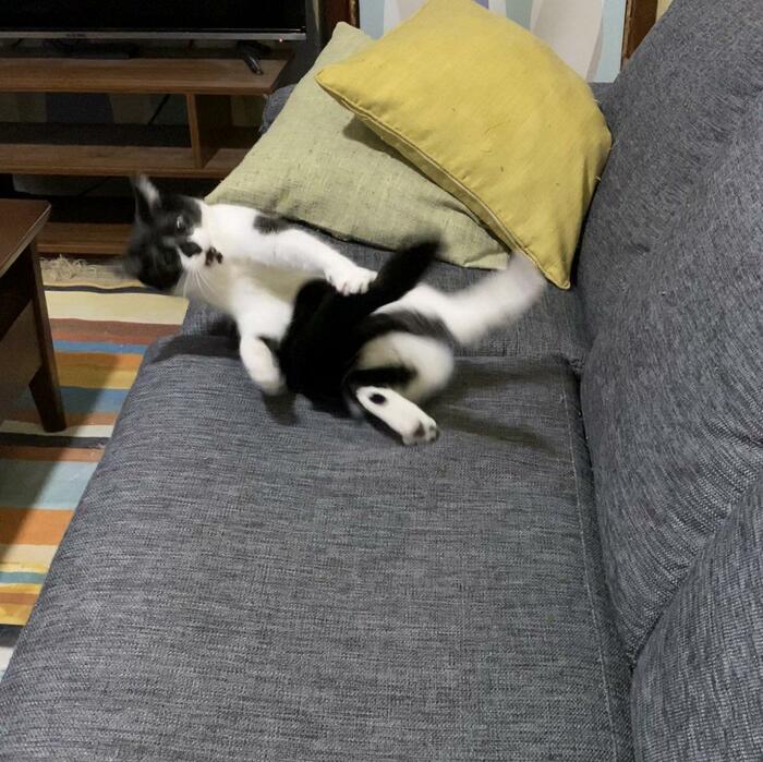 遂に自分の尻尾の存在に気付いてしまって楽しそうに暴れている木曜日の朝、おはようございます😂 pic.twitter.com/AkWeTVye0w