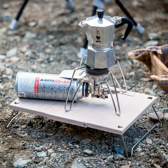 「耐熱アルミテーブル」は約10kgの重さに耐えられるテーブルです。シートをフルフラットにできる車やテントの中で、食事や明日の予定の確認のため地図を確認するときなどに「ちょっと物を置きたい」「下を向いてばかりで疲れる」と思ったことはありませんか? その悩み、折りたたみ式のテーブルがあればすぐに解消できますよ。