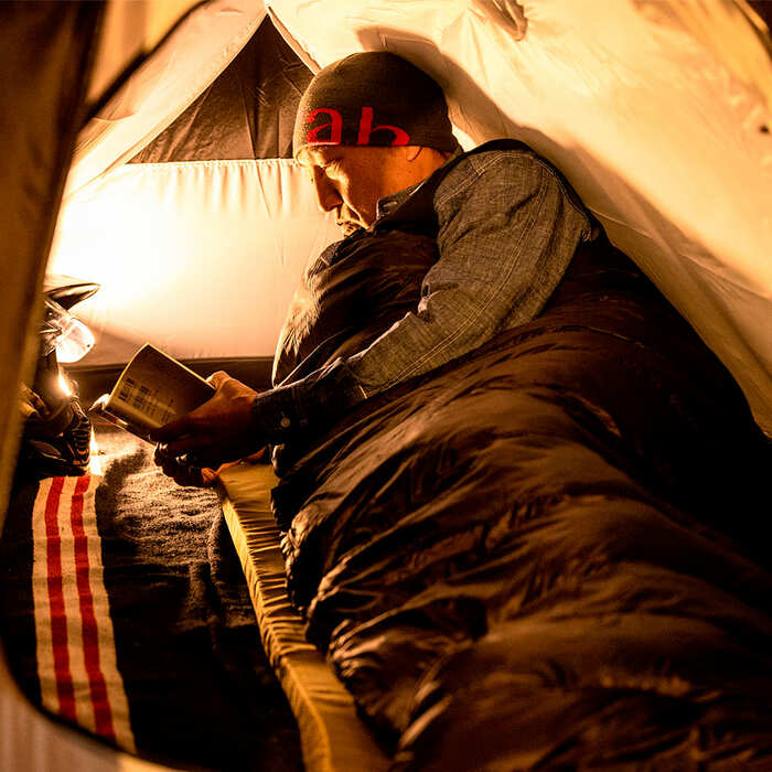 「フュージョンダウン+(プラス)シュラフ」は、天然ダウン35%・フェザー5%と吸湿発熱わた60%を用いた「フージョンダウン+」で作られた寝袋です。快適使用温度が5℃と冷えに強いだけでなく、1kgと軽量で、コンパクトに持ち運べます。