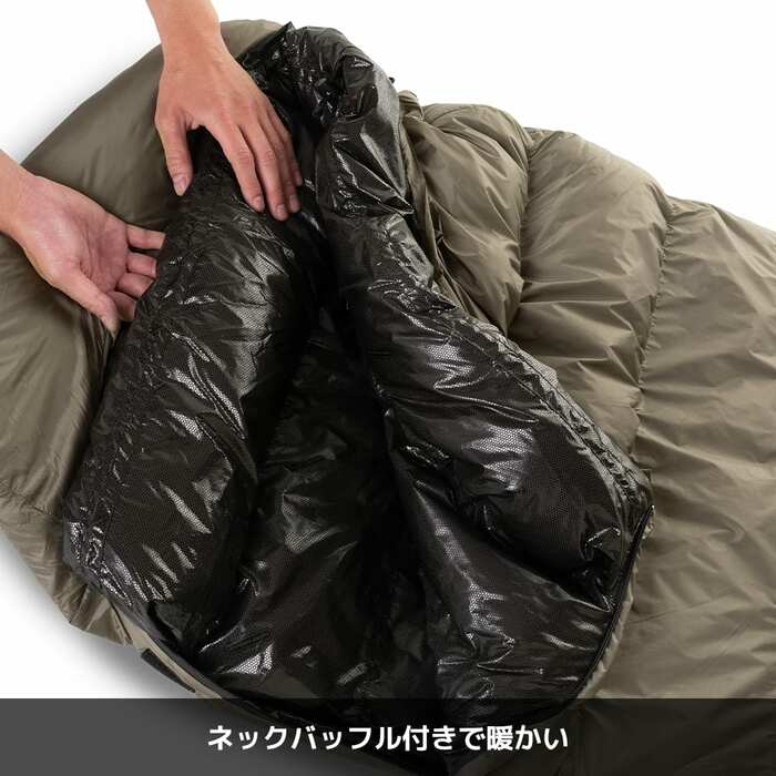 「アルミフュージョンダウン+(プラス)シュラフ」は、フュージョンダウン+シリーズのハイグレードモデルの寝袋です。内側にブラックアルミを使用しており、通常のシルバープリントに対して1.5倍の保温性を誇ります。