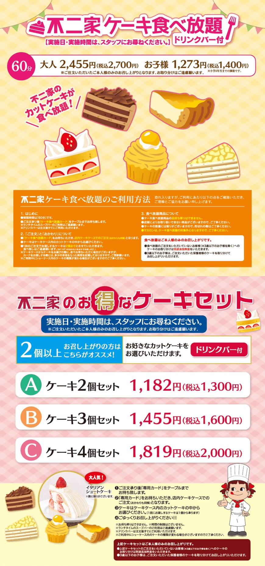 2. スイーツ好きの楽園!満足感の高い不二家ケーキ食べ放題