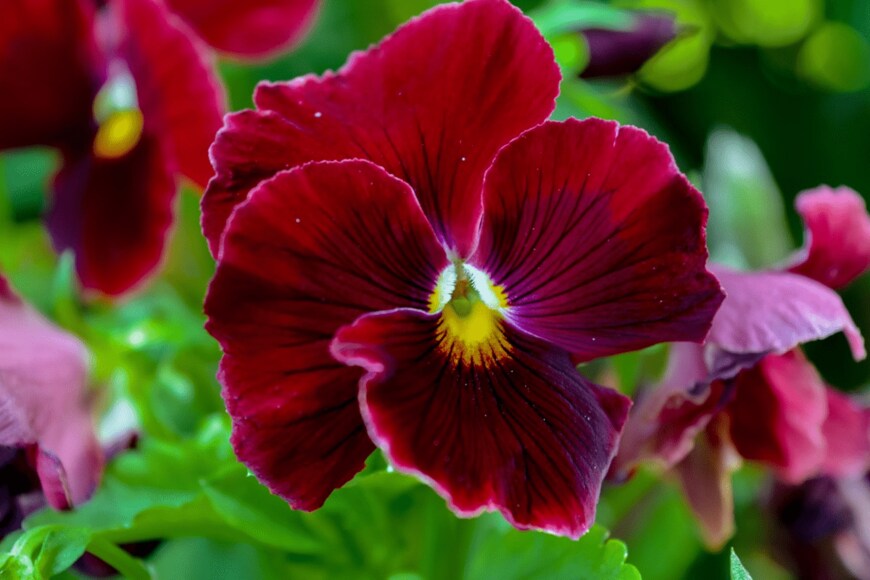 野生のスミレを園芸用に品種改良して作られたパンジーやビオラ。当初は青や黄色が多めでしたが、近年は赤やオレンジから黒までさまざまな色合いがあります。