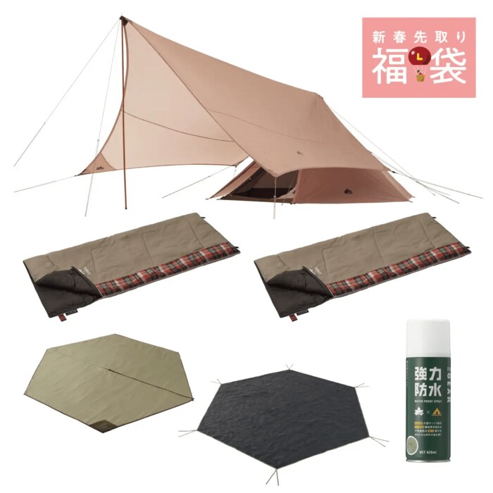 【ロゴスの福袋】Tradcanvas Tepee&タープ350 シュラフセット