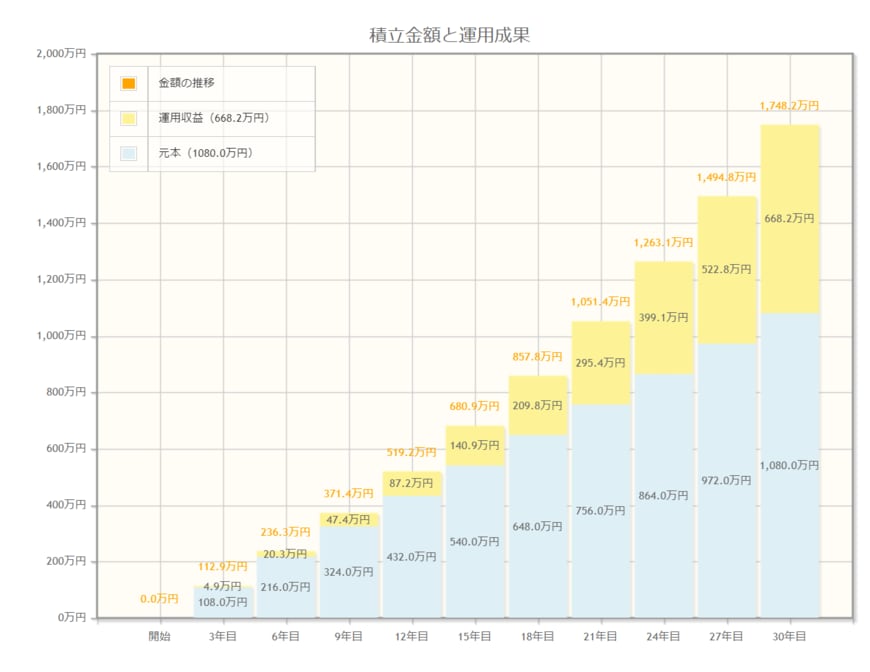 つみたてNISAシミュレーション「月3万円・年率3%・30年間」