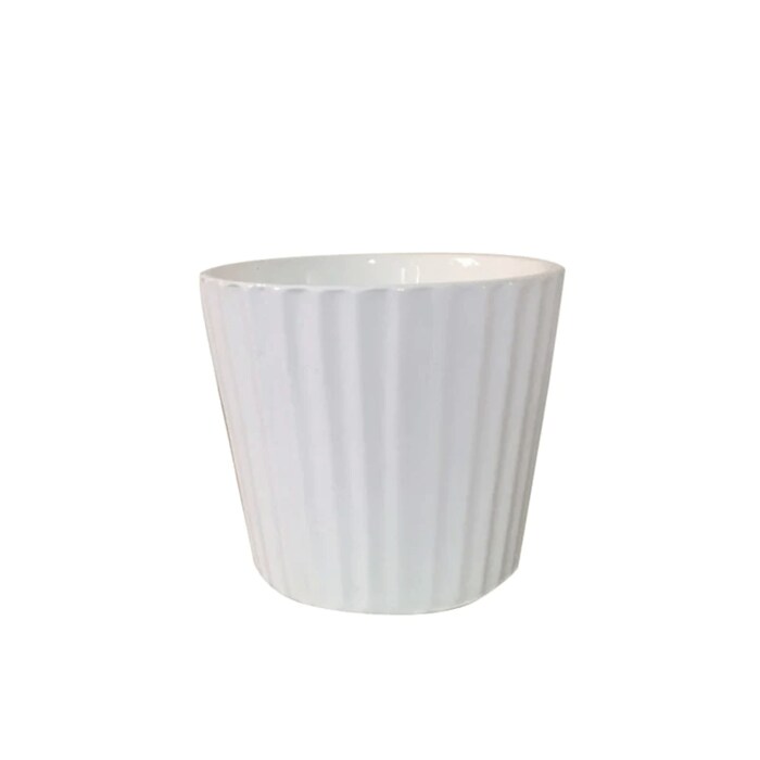 どんなモチーフのお部屋にも合いそうな、シンプルな植木鉢です。ストライプ模様をかたどっている細やかなディティールに注目。