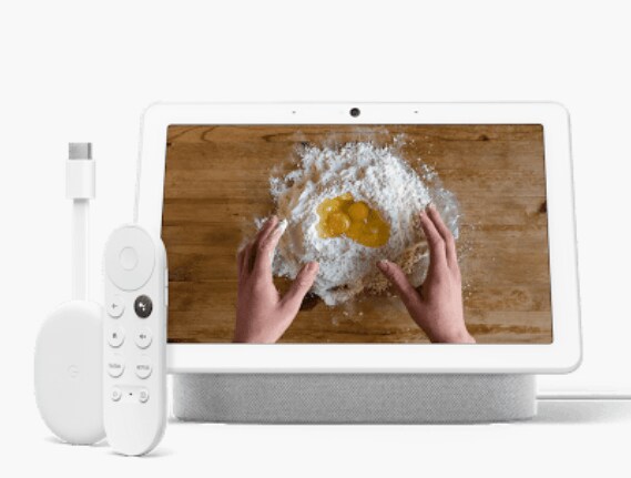 Google Nest Hub Max では、YouTube でレシピを検索したり、キッチンで動画を楽しんだりできます。