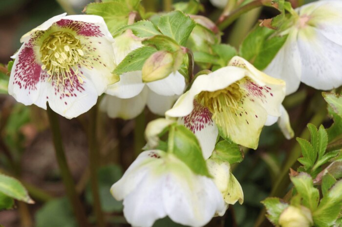 気品のある佇まいで世界中のガーデナーを魅了するクリスマスローズ。大人っぽい雰囲気で、縁取りが入る「ピコティ」や細かい斑が入る「スポット」は、ホワイトの萼片によく映えます。