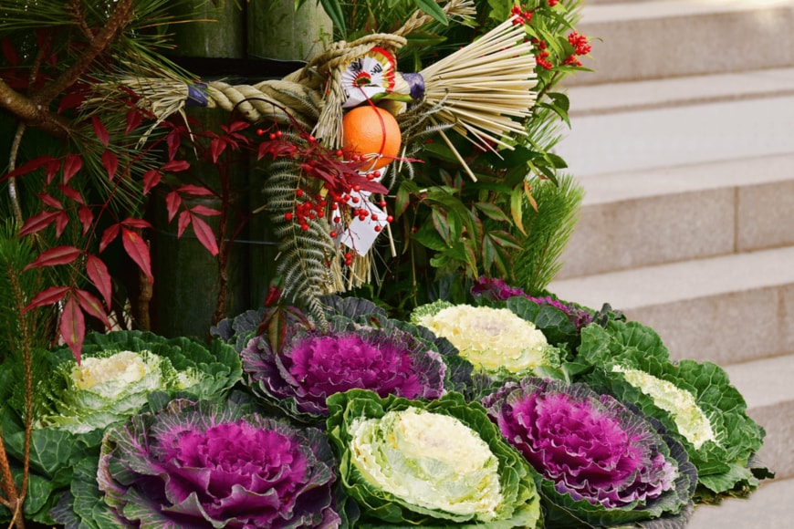 お正月の門松に使われているハボタンは華やかさを演出するのに欠かせない植物。近年の品種改良によりオシャレなハボタンが登場しています。アレンジの幅が広がるのも嬉しいところです。