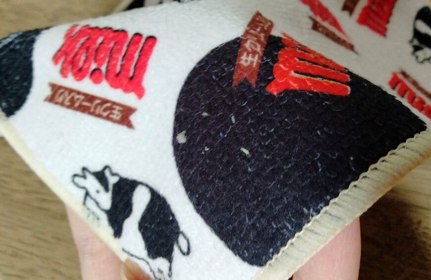 セリアのチロルチョコデザインのハンカチは「マイクロファイバー」素材となっています。吸水性が高く、水気をすぐに吸い取ってくれます。