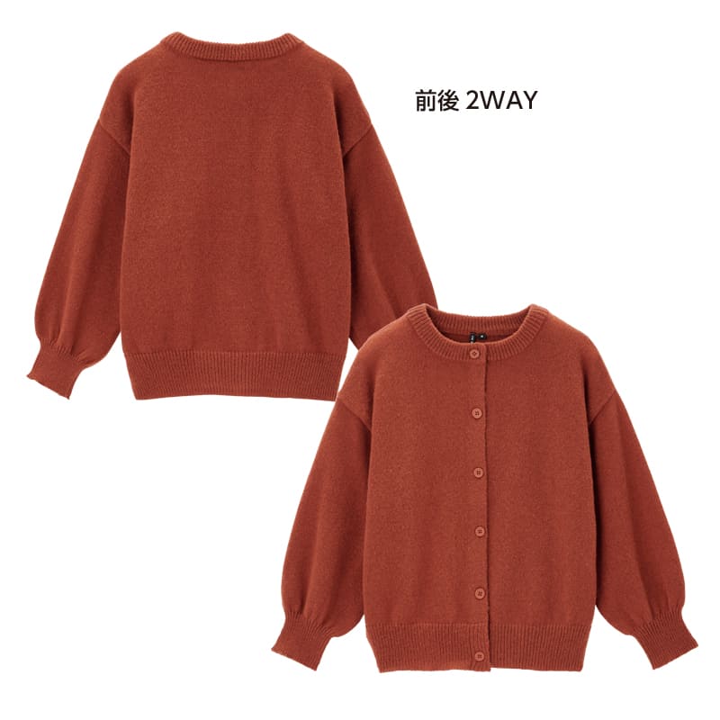 ボタンをあけてカーディガンのようにもできるニットです。袖がふんわりとしているのもかわいいです。