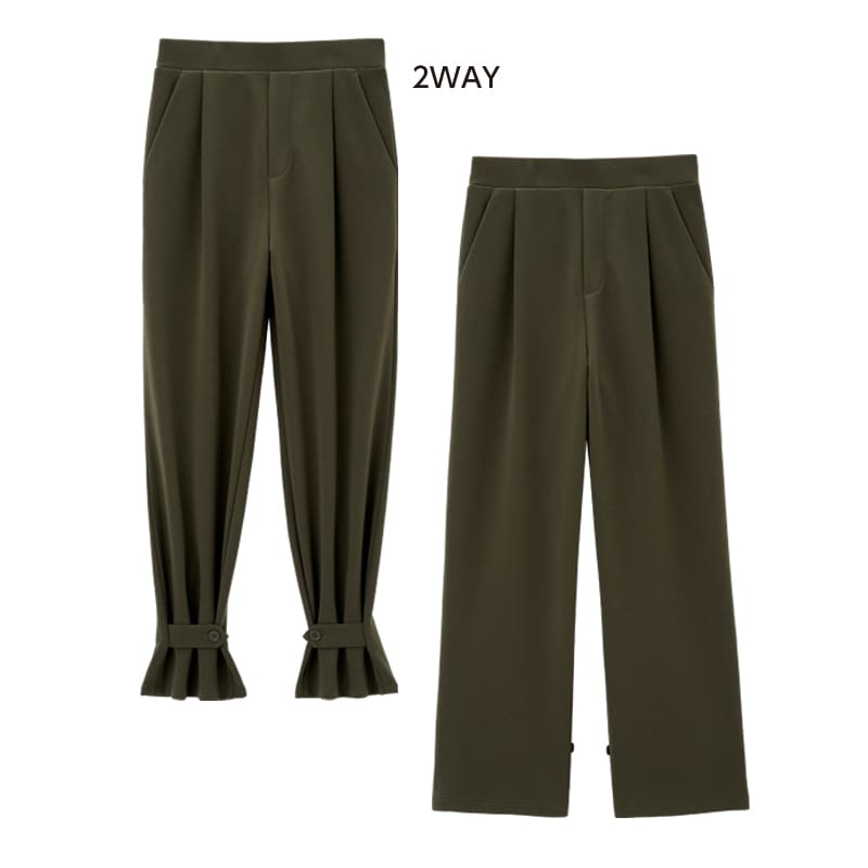 裾を絞ることができるデザインのパンツです。裾を絞ると、一気に愛らしい雰囲気が出るのが魅力です。