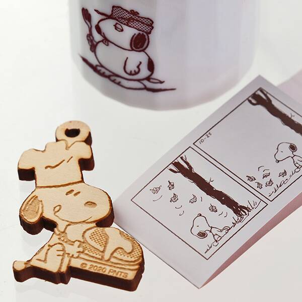 ウッドチャームの絵柄はパンケーキを食べようとするシェフ姿のスヌーピー。おいしいだけでなく楽しい気分にもさせてくれますね。