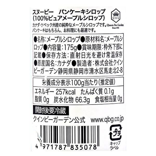 【クインビーガーデン スヌーピー パンケーキシロップ 175g】1404円(税込)