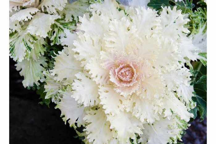 大人っぽい寄せ植えにはダークカラーのハボタンがオススメ。ややピンクを感じさせるホワイト系のハボタンはロマンチックな寄せ植えに。