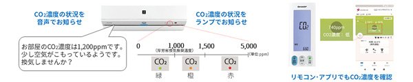 シャープのエアコン「Xシリーズ」の特長1.CO2センサーで適切な換気タイミングをお知らせ