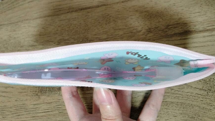 セリアのカービィの歯磨きセットは、ポーチのデザインもかわいいアイテムです。写真のように、いろいろな表情のカービィがデザインされています。