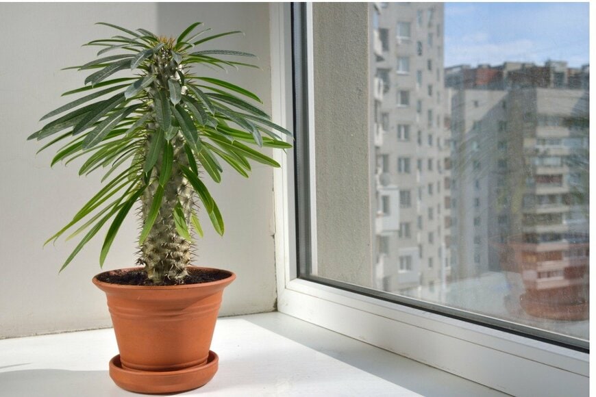 マダガスカル原産のパキポディウムは注目の多肉植物。がっしりとした幹の先に葉が生える品種など、個性的なフォルムが特徴の観葉植物です。