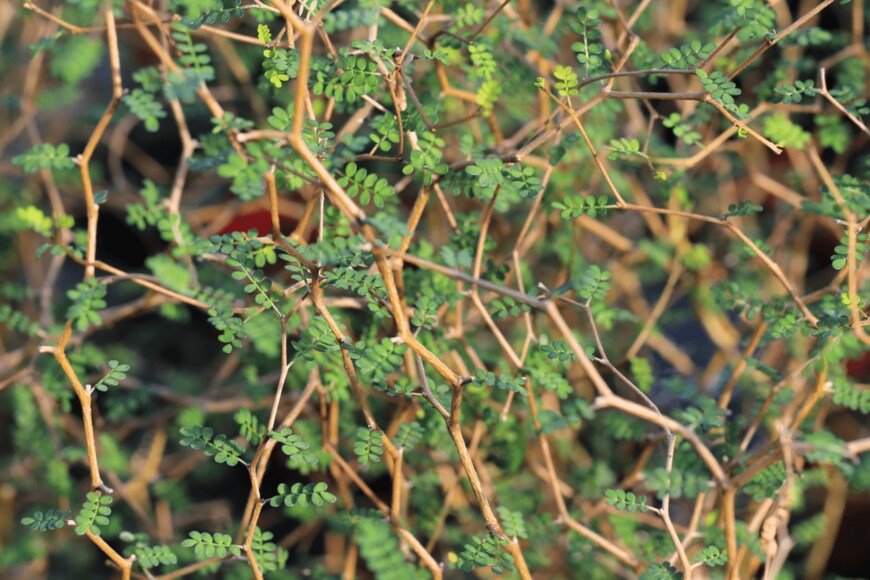 ジグザグの細い枝がユニークなソフォラ。細かな葉が枝に連なる様子がオシャレな常緑高木です。