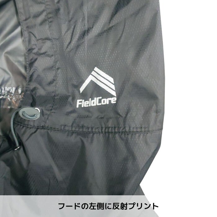 約170g(Lサイズ)の軽量アウター。ポケッタブル仕様で携帯しやすく、必要なときに気軽に羽織れます。両サイトにはファスナーポケットが付いており、小物も落ちにくいです。フードの左側には反射プリントが付いているので、夜間の使用でも活躍するでしょう。
