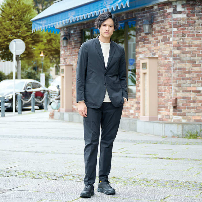 リバーシブルで使える2WAYジャケット。かっちりしたジャケットを裏返すと、フード付きのアクティブジャケットに切り替えられます。フードはシーンや装いに合わせて取り外し可能です。素材には耐久撥水とストレッチ性に優れたSOLOTEX®(ソロテックス)を採用し、快適な使い心地や着心地を実現。ポケッタブル仕様なので、コンパクトに畳めるのも嬉しいポイントです。