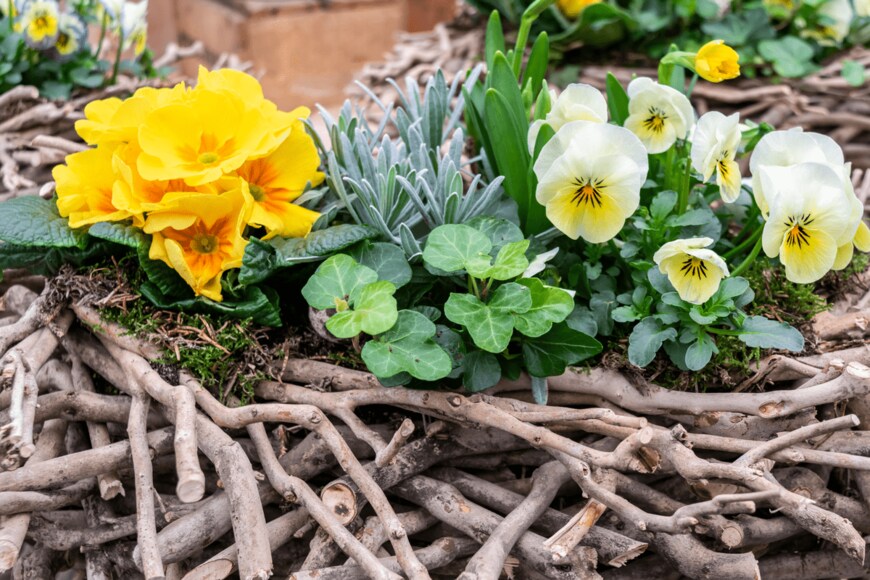 ネメシアやプリムラ・ジュリアンはパンジー・ビオラと同じように主役級の花。数は少なめにして、華やかなな色合いや異なる花の形を楽しみましょう。