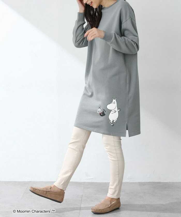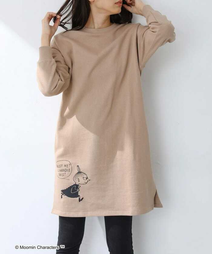 大きめのプリントが特徴の、ムーミンと仲間たちデザインワンピースです。ポケットつきで、普段使いのときにも便利。肌触り抜群の裏毛素材で温かく着られます。タイツと合わせてもかわいく着られ、パンツに合わせるときにもぴったりの丈感です。