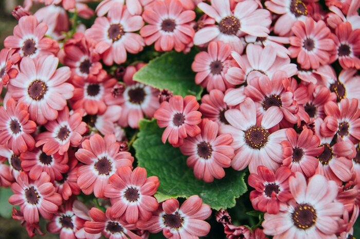 キク科のサイネリアは室内で育てる冬の花。鉢で販売されているので、そのまま室内で楽しみます。